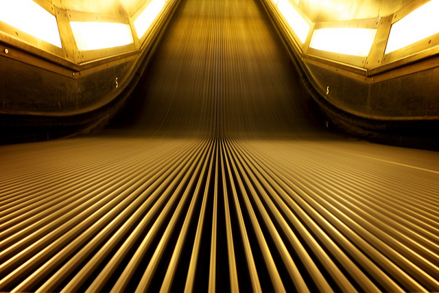 There are two things I really like about this shot from rpmaxwell. The first is that the long exposure creates long straight lines and makes it appear as if there are no steps. The second is how this photo has matched up with true Metro escalator reality. (EXIF.)