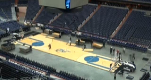 Have you ever wondered how the Verizon Center transforms from a hockey rink into a basketball court when the Capitals and the Wizards play at home on the same day? TBD’s Sara Kenigsberg filmed this awesome behind-the-scenes look at the transformation in action, as crews resurface the ice, take down the glass around the rink, lay down concrete slabs, take out the penalty boxes and boards, retract and install a bunch of seats, and then hammer the maple basketball floor down into place — all in the span of about three hours.