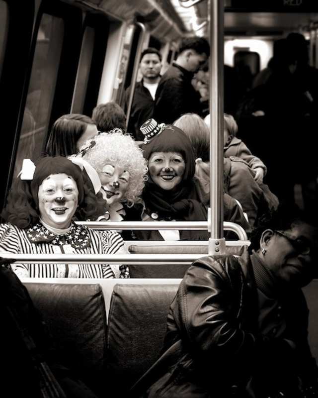 While many out there think that Metro is run by clowns, it’s a little unusual to see a bunch of them on the Red Line. Luckily, pablo.raw was there to capture these smiling and oddly non-threatening clowns.