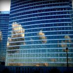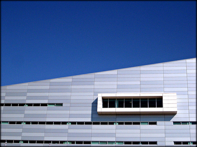 The strong graphic composition in this image by flipmode79, turned what could be a boring subject into a beautiful photograph. The bright blue pop of sky is a nice contrast to the building. (EXIF.)
