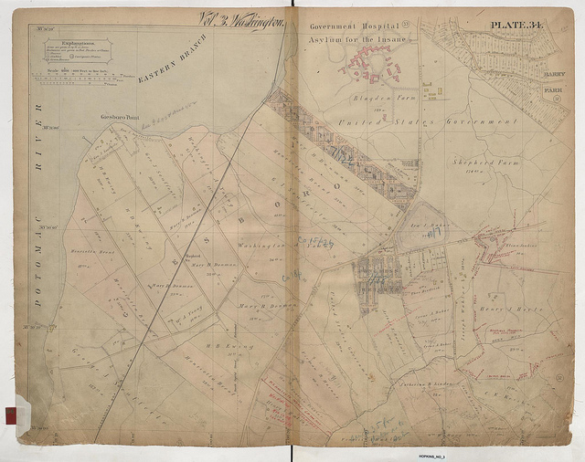 The map above, one of the entries uploaded to Flickr on February 28 (be sure to check out the high-res version to get an appreciation for the detail), is a representation of the Barry Farm and Congress Heights neighborhoods, as well as St. Elizabeth’s — which at that point was called the “Government Hospital Asylum for the Insane.”