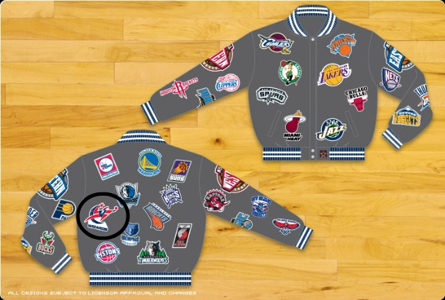 Rumors began swirling around Twitter and the Internet this morning that this jacket shows off a leak of the Washington Wizards’ new logo, circled above — which basically is just a re-coloring of the team’s current brand with the franchise’s traditional red, white and blue hues.
