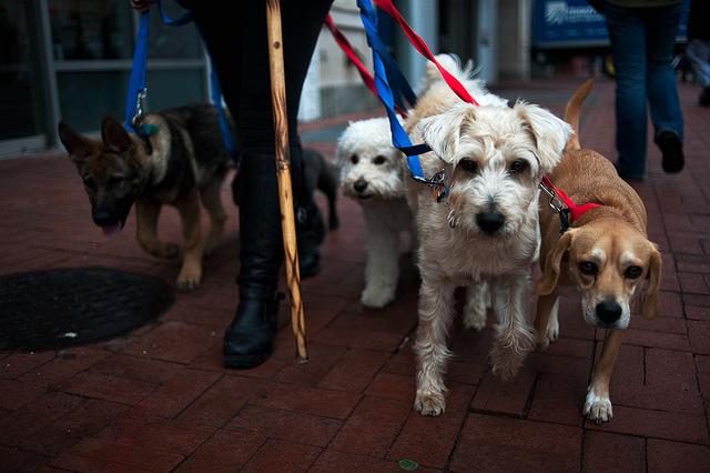 It’s no secret that we are cute animal crazy here at DCist. This photo of small pups by Matt.Dunn keeps up our tradition of loving the adorable. Aside from the “awww” factor, this image draws you in by creating a close connection with the subject. It also appears that the staff carrying dog walker may be leading these dogs into battle, like a prelude to the Puppy Bowl.