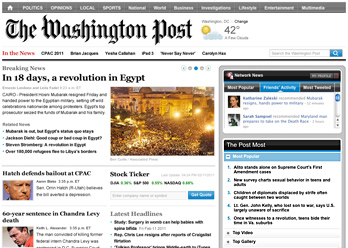 The basics? Well, the Post’s website now revolves around four content hubs — Politics, Opinions, Local and Sports — with everything else tucked in behind. The real beef of the update is found in the site’s multimedia and interactive features: there’s video everywhere you look in the redesign, and the site promises that “each morning, your news intake starts with a new video on the day’s top local stories and features.” There’s an enhanced commitment to interaction too — take for example, the paper’s soccer hub, on which video, a national Twitter feed, a Facebook widget and the new “Post Most” popularity scale occupy a good portion of the non-advertising real estate, or the PostLocal hub, where photo galleries are given their own dedicated space. (We’re also told that the website will be handing out badges in order to increase the quality of its notoriously ranting commenters, which should be…interesting.) The new today’s paper feature is, at the least, a curious bridge between the Post’s paper and web offerings, and the generally larger focus on images in articles is a welcome upgrade.