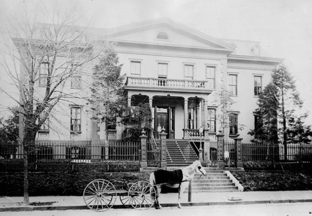 In 1864, President Abraham Lincoln signed an Act of Congress that authorized the building of the naval hospital. The final cost of building the hospital was $115,000, a lot for the 1860s. The fence surrounding the hospital was cast at the local iron foundry of F. & A. Schneider, as their name is stamped on the fence.
