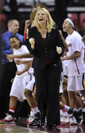 Maryland women’s basketball coach Brenda Frese and her players take on Georgetown tomorrow night. (AP Photo/Gail Burton)Let’s be honest: unless you’re Rachel LaBruyere or hail from Richmond, the men’s NCAA Tournament has lost a bit of its luster for D.C. homers. Georgetown and George Mason failed to advance past the tournament’s first weekend, and the tournament itself has packed up from the Verizon Center, taking it’s insane finishes and Kemba Walker’s acrobatics along with it. But though local interest in the men’s tournament is waning, the women’s competition actually has some regional juice, featuring a matchup between long-dormant rivals Georgetown and Maryland.