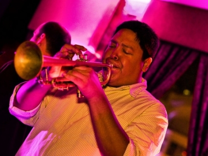 Joe Herrera.Seeing a jazz gig in the District that doesn’t feature Joe Herrera is almost a challenge. The ubiquitous trumpeter is at the center of the city’s burgeoning jazz scene and plays an important role as both bandleader and sideman, co-directing the fine Bohemian Caverns Jazz Orchestra with saxophonist Brad Linde on Mondays, backing master griot Cheick Hamala Diabate at the Bossa Bistro & Lounge on Tuesdays, jamming with talented young saxophonist Elijah Balbed on Wednesdays and Thursdays at the Bayou, and playing one-offs with Thievery Corporation saxophonist Frank Mitchell, Jr. In March, Herrera and guitarist Rodney Richardson launched the Sunday Jazz Lounge series at Twins Jazz, which showcases many of the area’s brightest young talents, plus he is a core member of keyboardist Will Rast‘s Funk Ark, which has just returned from a series of showcases at SXSW. Oddly enough, Saturdays are the only regular night off for this busy jazzer.