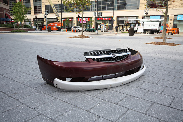 - From Mr. T in DC: “The front bumper from what was probably a Nissan Maxima mysteriously appeared right in the middle of the triangular plaza in Columbia Heights. There were no skid marks, broken glass, or any other signs of an accident or vandalism. I wonder how it got there? There’s never a dull moment in Columbia Heights.”