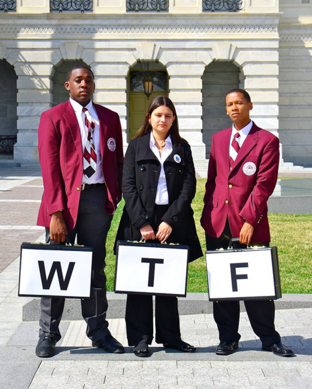 WTF, indeed. As photographer pablo.raw notes on Flickr, these youngsters are students who attended the United States Student Association leadership conference last week. They dressed as if attending a job interview and asked Congress “where are the jobs?” and “where is the funding?”