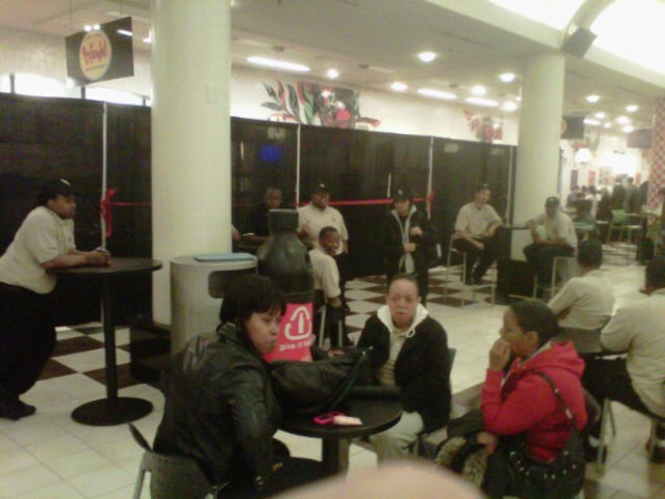Photo by Matt Ashburn.Many of you are exhibiting a near-obsessive excitement regarding Bojangles’ opening in Union Station. But those who have stopped by the Union Station food court today in the hope of securing some chicken and biscuits for lunch have so far been cruelly greeted by a black curtain, understandably leading to massive disapointment.