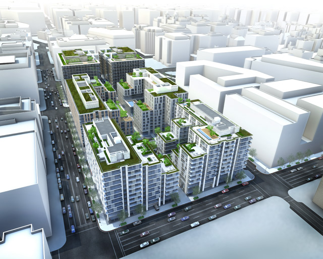 At today’s ceremony, Mayor Vince Gray called the development one of the “most important projects in the history of this city” and touted that it would bring thousands of construction jobs to the city. The first phase of the project — which will eventually boast 325,000 square feet of retail space (quite specifically broken down into 32% restaurants, 30% fashion, 13% fitness, 12% specialty, 6% home furnishing, 4% entertainment and 3% grocery), 443 apartments including some affordable housing and a 350-room hotel on a ten-acre parcel — is slated to open in 2013. (Construction actually started on March 23.) For more information on the project, check out a few renderings of the project, several of which are also included in the PDF below.