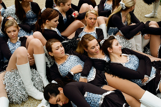 At first blush, this shot from yospyn taken during last weekend’s Cherry Blossom Parade appears to show a group of cheerleaders toppled like dominoes by some unseen force. But upon further inspection, it looks as if they’re just taking a quick break.