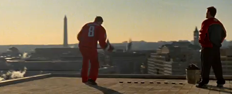 The above screenshot, taken from a newly-released commercial, features Ovi taking some slappers from the roof a building located on top of the Judiciary Square Metro station. The spot was filmed back in February — here’s hoping that they got clearance from the Pentagon for Ovechkin’s pucks to enter restricted air space while en route to McLean.