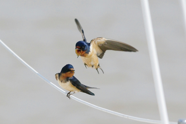 According to the caption, philliefan99 caught a couple of Barn Swallows in action in Alexandria. I wonder if he also warned the perched bird to watch its back! (EXIF.)