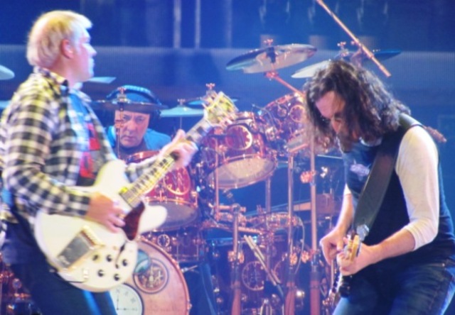 Opening with the rock standard, “The Spirit of Radio”, the band’s two-set, three-hour performance mined material from fourteen of its eighteen studio albums. A heavy guitar-driven approach has been the Rush sound of late, with Lifeson’s riffs taking center stage. “Far Cry” from Snakes & Arrows, along with “Caravan” and “BU2B” from the band’s forthcoming album, Clockwork Angels, provided Lifeson plenty of room to stretch. The new album reportedly has a steampunk concept behind it, and that theme permeated the show’s visual style.