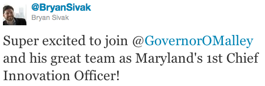 Bryan Sivak, who took over the city’s troubled Office of the Chief Technology Officer in 2009 and returned it to respectability before emotionally leaving office last December, has accepted a job as Maryland’s first Chief Innovation Officer. Sivak, who has been dubbed a “Gov 2.0 Hero,” tweeted the news this morning.