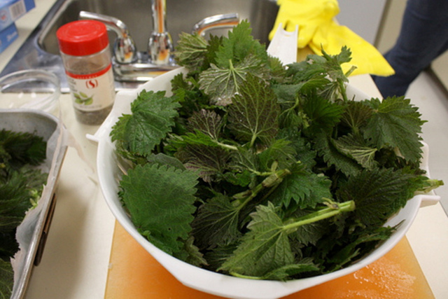 Photo by lacatholique.It’s finally properly farmers market season again, which makes any food lover happy – the first produce of spring show up as asparagus, spring onions, radishes, and various leafy greens. For those who show up early at the market, strawberries can often be found. But what about nettles? Often found at farmers markets this time of the year, they’re not perhaps the type of produce that one anticipates like the first year’s tomatoes. But, if you’re looking for something out of the ordinary this spring, pick up some nettles.