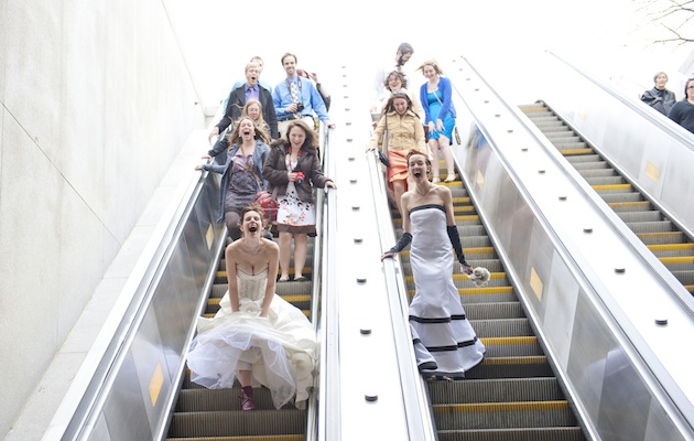 What do you have to do in order to look this happy while entering the Metro? Marry your blushing bride, it seems. Maggie Winters‘s photo of the just married couple entering the Metro is the definition of happiness. (EXIF.)