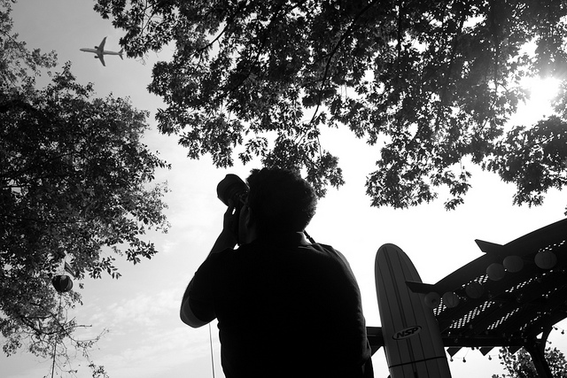 When it comes to certain tastes in photography, usually simplicity is the best policy, but sometimes a little chaos can pique interests. In this black and white shot by phillipich, there are five seemingly disparate elements: the plane, tree canopy, sun glare, archway and, of course, photographer. Together they form a shot that keeps the eye moving in circles.