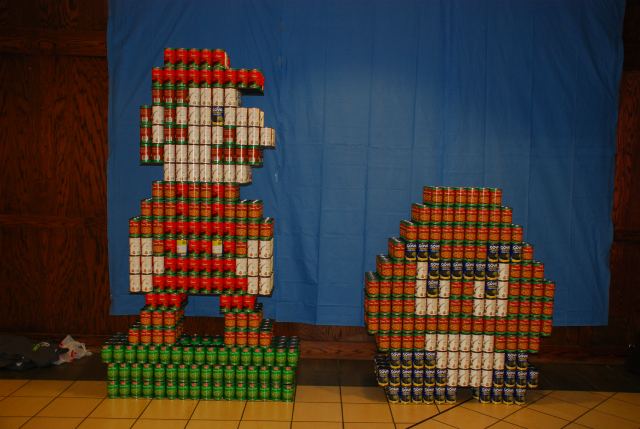 Upon reading this morning’s Week Around the Ists, which featured a photo of some 8-bit can art constructed at a Chicago Whole Foods, DCist reader Brandon Lenk sent us an email. “Just poking the bear a bit,” wrote Lenk, “but I think here in D.C., we are kicking more 8-bit Mario ass than some Whole Foods in Chicago.” To prove it, Lenk sent along a these images taken during 2007’s Canstruction exhibit at the Ballston Mall to prove that, indeed, D.C. sets the trend when it comes to Nintendo-related can mosaics.