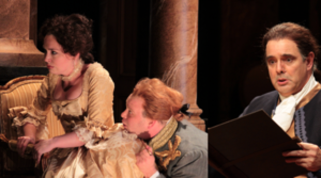 Laura C. Harris, Sasha Olinick and Edward Gero in “Amadeus”.Amadeus is an almost perfect illustration of what makes a good film and what makes a good play.