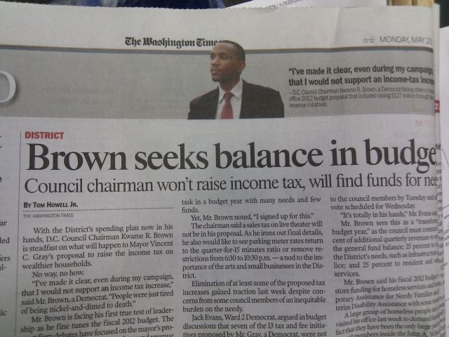 Last week, we asked the question “where in the world is Sulaimon Brown?” Yeah, we were looking way too hard. Turns out, Brown’s just been acting as a fill-in for D.C. Council Chair Kwame Brown at the top of the Washington Times’ Monday morning Metro section.
