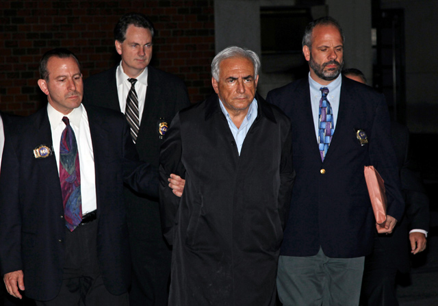 Dominique Strauss-Kahn being escorted by NYPD officers. (AP)- Gothamist was riveted by the news that now-former IMF head Dominique Strauss-Kahn was accused of sexually assaulting a hotel maid. Of course, the French were disgusted by America’s tradition/love of the perp walk and Ben Stein wondered how a “short fat old man” could allegedly rape anyone.