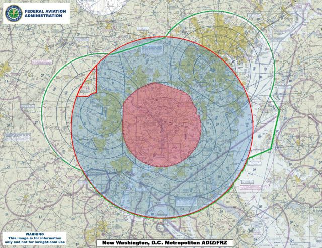 Of course, commercial aircraft traffic is tightly restricted around the District (the map above outlines the air space restrictions around the area), so it’ll certainly be a rare sight to see a plane flying so low over the city.