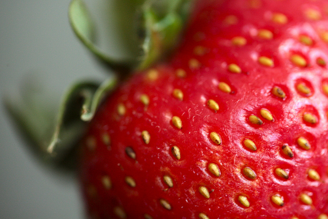 Since they don’t ripen after picking, it’s optimal to pick up local strawberries at the farmers’ market. Make sure the redness is all the way up beyond the shoulders, and smell them — the scent should be almost candy-like. If you can, taste test. The recent rains can often wash out the flavors of the strawberries, though many farmers now lay down cover to prevent this from happening.
