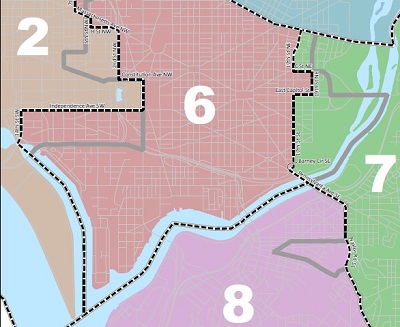 The revised plan, as noted on Monday, is a big political win for Ward 6 Councilmember Tommy Wells. Wells’ ward would have fractured along neighborhood lines under the previous plan. In the new plan, the D.C. Jail’s 2,000 or so inmates and the waterfront Reservation 13 tract would be counted as part of Ward 7, allowing Ward 6 to continue to hold the entirety of both the Hill East and Rosedale neighborhoods.