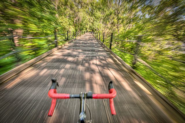 Bicyclists are a brazen sort. If it’s not dodging traffic or running down thieves, they could be doing foolhardy feats like this one captured by joyride1x1, presumably while riding the bike at the same time. At least it appears that the ride took place on a bike path and away from the petulant ire of D.C. drivers — no, this is not a dare to the Evel Knievels out there. On the other hand, without the risk, we wouldn’t have been awarded with this dynamic shot.
