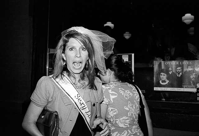 Ah, yes. Nothing like scaring the crap out of a (possibly inebriated) bachelorette in the name of street photography. Nicely done, Aziz .