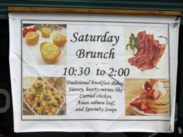 I never paid it much mind as a place to dine until I noticed a banner outside and some leaflets left around the neighborhood advertising a new Saturday brunch buffet — all you can eat from a modest selection breakfast items and other savories for $12.95, with a rotating international selection each week.
