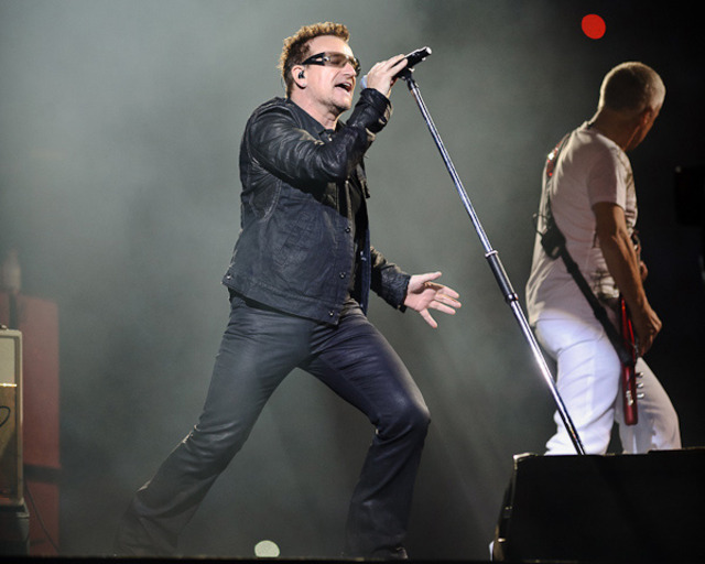Look, you can’t stop him talking like that. Larry Mullen, Jr., U2’s ever-scowling drummer, has tried. And mankind was, empirically speaking, present in large part, to the tune of roughly 80,000 people. Because Bono suffered a back injury last year requiring the postponement of an entire once-paralyzed leg of U.S. concert dates, the U2 360 Tour — the largest gathering of arguably sentient carbon-based life since gaseous clouds of galactic dust first coalesced into blah blah blah — is still ticking; still crushing glum, stick-armed vegans like Bon Iver or whomever beneath its brawny carbon footprint, more than two years after the release of the album it was ostensibly designed to promote, No Line on the Horizon. (Critics liked it. You did not.)