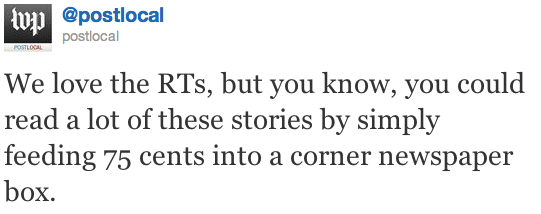 To hell with this Twitter thing, we’ve got newspapers to sell! (Hey, guys: maybe if you didn’t pass on one of the most interesting journalism stories of the year, we might start buying it a little bit more often.)