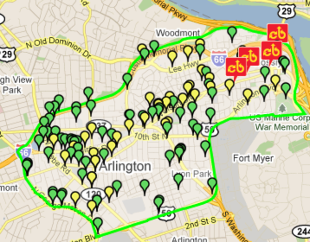 Much like their counterparts in the District, Arlingtonians are being asked by the County’s Department of Environment Services to mark their suggestions for new Bikeshare stations on an interactive map. (The screenshot above marks community suggested stations with green pins, while locations proposed by the County are marked with yellow pins.)