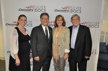 Festival Artistic Director Sky Sitney, Senator Al Franken, and filmmakers Chris Hegedus and D.A. Pennebaker at last night’s Guggenheim Symposium at Silverdocs.Al Franken took the podium at the AFI Silver Theater 1 at the Silverdocs festival last night to introduce the honorees of this year’s Charles Guggenheim Symposium. He ran down some of the impressive list of people and events they’ve captured through their lenses over the years, which includes Bob Dylan, Jimi Hendrix, Jane Fonda, Janis Joplin, the 1992 Clinton Presidential Campaign, Stephen Sondheim and John DeLorean. Perhaps most memorable? “Me,” Franken chuckled.