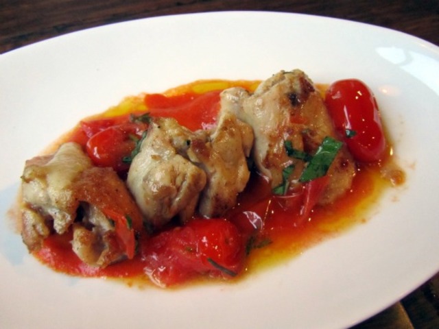 Also coming out of the oven are a worthwhile series of wood-fired small plates. If there’s one dish that no Top Chef-whore will do without upon a visit to Graffiato, it’s the chicken thighs with pepperoni sauce. Judge Gail Simmons raved orgasmically during the Top Chef-All Stars finale about Isabella’s creation and the erotic connotations that come with it. (Think: “Oh Mike, I want more of your pepperoni sauce.”) Paired with braised pork on the show, Isabella has decided that chicken actually works best with his pepperoni sauce. Unfortunately, the meat isn’t so much sauced as it is sitting on top of the sauce and doesn’t hold the sauce well. So it’s hard to truly get them together in one forkful, and you’ll be left with sauce on the plate. If you’re out of bread, you can shoo away the bussers trying to grab your empty plates and finish the rest with your finger like I did. The intense flavor, truly the essence of pepperoni, is worth its hype.