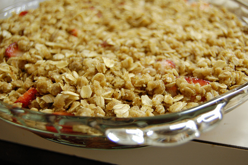 Of course, all of these fruits are great on their own, unsullied by other ingredients. But sometimes it’s nice to doll them up for dessert. One of my favorites is strawberry-rhubarb brown betty — fruit baked with a topping of streusely oats, which is better known as a crisp. It falls in to a whole world of baked fruit topped with pastry with characteristics not well-defined for each name.