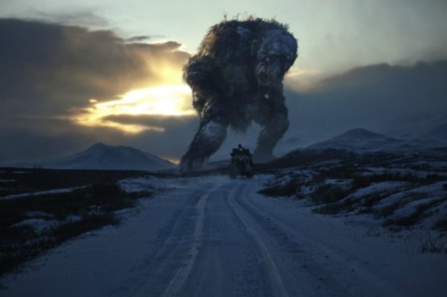 The students, still skeptical — despite the fact that it seems unlikely that it was a bear that destroyed their car and ate all the tires while they were hiking in the woods — accept Hans’ invitation to film his hunt the next night. There, they come face to knee with a massive figure right out of Norse legend.