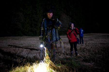 Trollhunter‘s band of student filmmakers — on-camera personality Thomas (Glenn Erland Tosterud), sound technician Johanna (Johanna Mørck), and cameraman Kalle (Tomas Alf Larsen) — begin the movie attempting to make a movie about bear poaching. In Norway, bear hunting licenses are difficult to come by, and there’s a rogue, Hans (Otto Jespersen), on the fringes of the community of licensed hunters that everyone insists is flaunting the regulations. Thomas and his crew pursue the gruff, bearded figure with dogged persistence, finally tracking him down in the middle of the night in the woods, just as he’s fleeing his prey: a troll, so he says.