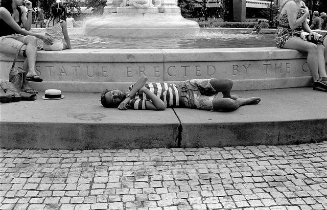 Based on the thick cross-striped shirt and cut off pants, this guy could be mistaken for a pirate washed ashore from a shipwreck. But probably not. Instead, I’d bet this gentleman is resting up for this weekend’s upcoming festivities across the city: a little pirate BBQing, some pirate tanning and definitely plenty of pirate drinking. Happy Fourth to you too, arrrrrr.