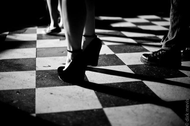 The secret life of feet. The lighting, placement, patterns; all create a scene that, in a tongue-in-cheek way, anthropomorphizes these lower appendages. Maybe this one we can call “The Gilted Lover” or “Starlet in the Spotlight.” But for all we know, the upper halves of belonging to these feet could just as well be doing something as mundane as having a conversation about last week’s episode of True Blood. Let’s not dwell on such things.