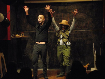 Karim Muasher and Carrie Brown have the comfortable camaraderie, polished stage presence and patiently-honed wackiness typical of Fringe festival circuit regulars. Their well-traveled The VindleVoss Family Circus Spectacular! is a pleasant road-tested little package of offbeat clowning with just a touch of poignancy.