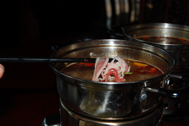 For our hot pots, we selected sirloin, tofu, napa cabbage and bamboo shoots. Platters of raw items will be brought out along with tongs to help you deposit and retrieve your morsels. I’m not sure if it was a result of an assumption that, as a Chinese person, I knew what I was doing, but our food was brought out with little commentary or instruction. While the cooking methods are fairly straight forward, I would suggest cooking the more flavorful portions of your selections first to intensify the flavors of your stock as seasoning for blander items such as tofu. And be careful to not let your proteins overcook.
