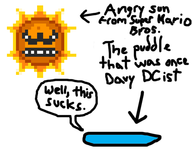 Illustration by Martin Austermuhle.It’s hot this week. Really hot. So hot, in fact, that Davy DCist has already melted while looking at the heat index forecast for the rest of the week. As we broil under the dome of heat and hyperthermia alerts are issued, don’t be like Davy — be sure to stay hydrated out there.