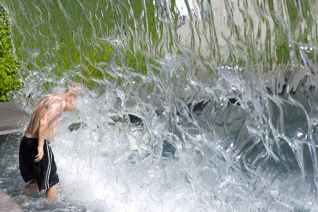 At this time of year, outdoor shots featuring people and water are always going to catch a photo editor’s eye, especially when a photographer is able to freeze said liquid into a striking, abstract pattern as suburbannation has done in this refreshing image taken at The Yards Park. (EXIF.)