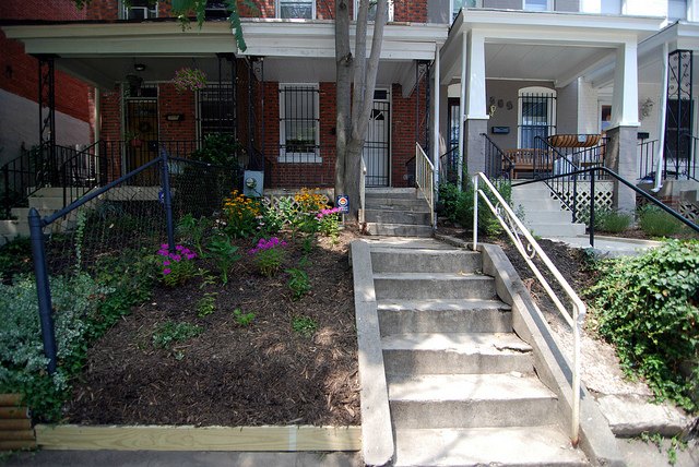 So dear readers, what better way to test out a new program then to do it myself, eh? I’ve been renovating my circa-1909 federal rowhouse in Columbia Heights since I bought it, foreclosed and gutted, in 2007, but still had both the front and backyards to landscape — so this came up at a perfect time when I heard about it from now-Friend of DCist Eric Nuzum. Now that my RiverSmart project is nearly finished — including a front yard full of gorgeous native flowers — I offer my experience for others who would like to participate in the program.