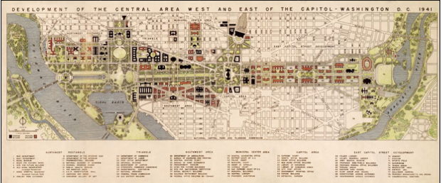 There’s quite a few words, many of them fiery, being uttered about the National Mall these days. What better time, then, to dive into some historical maps which document the space — one of our favorites being the map above (check out a zoomable, high-res version here), uploaded by the Big Map Blog, who has an extensive cache of historic D.C. maps which can keep you occupied for some time.