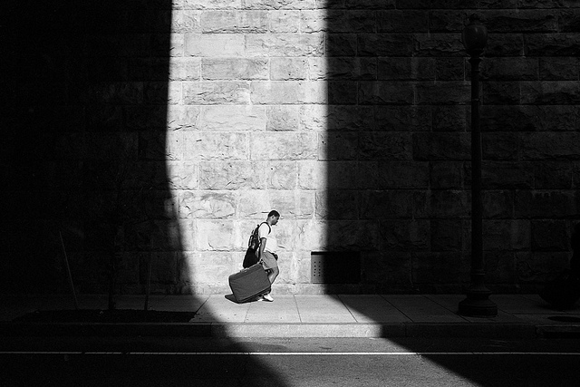 Without the sliver of light, this photograph would just be a guy dragging the world’s oldest suitcase to Union Station. But, because Yospyn framed this shot so well, we have a well composed, interesting image.